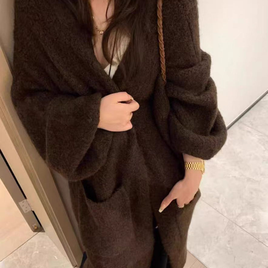 大码韩系软糯高级感慵懒风中长款针织开衫女秋冬季胖妹妹毛衣外套