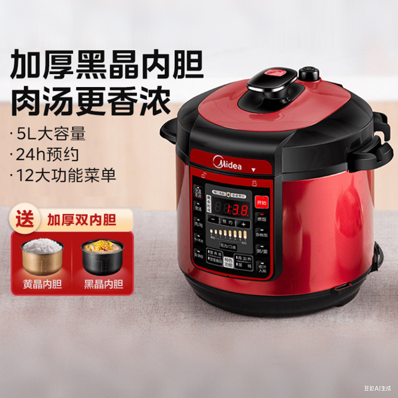 美的电压力锅智能电高压锅饭煲家用5L6升官方1双胆2-3-4正品5-6人