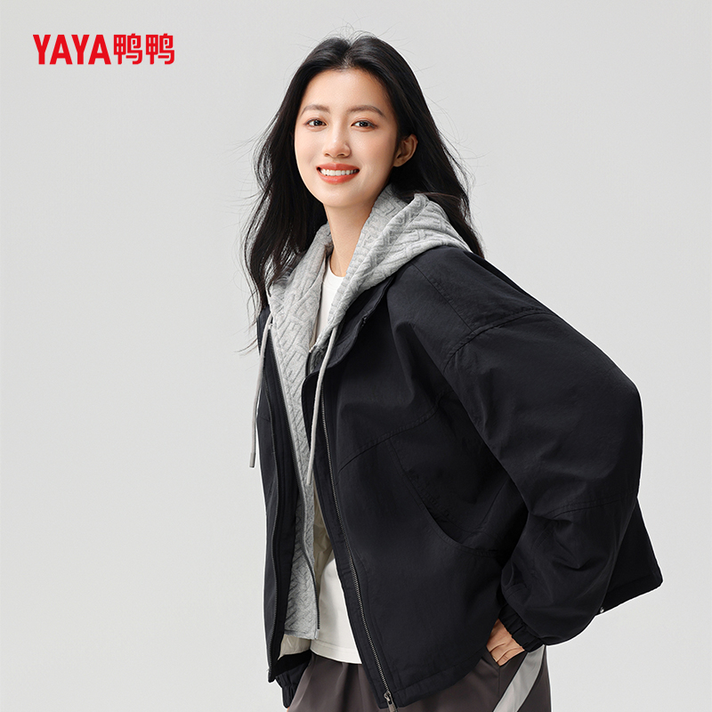 YAYA鸭鸭轻薄羽绒服女士2025秋冬新品时尚宽松款连帽百搭保暖外套