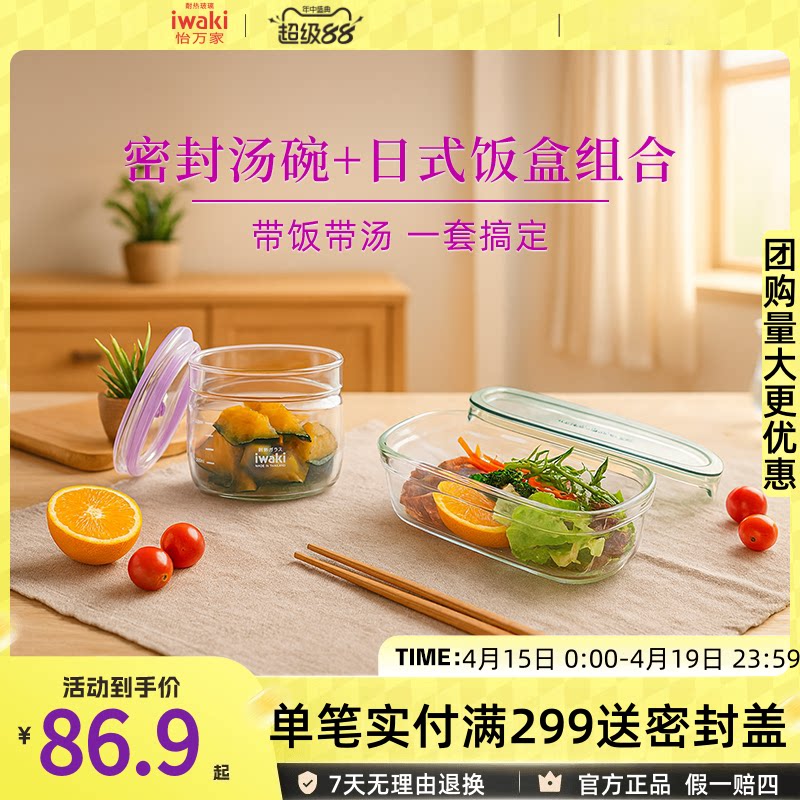 【会员秒杀】怡万家耐热玻璃进口密封罐550ml+日式保鲜饭盒500ml