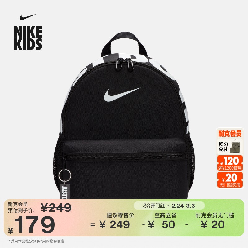 耐克实用儿童双肩包春季男女童印花收纳舒适宽敞书包NIKE DR6091