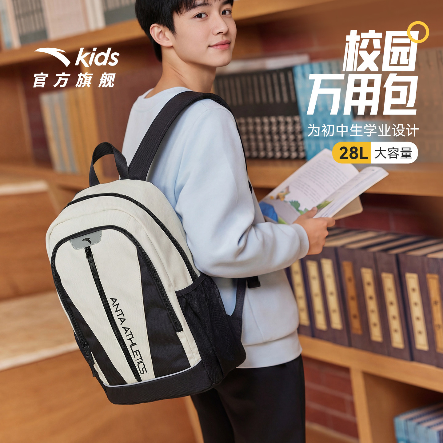 安踏儿童双肩包高年级书包女生初高中生减负背包轻便校园书包男生