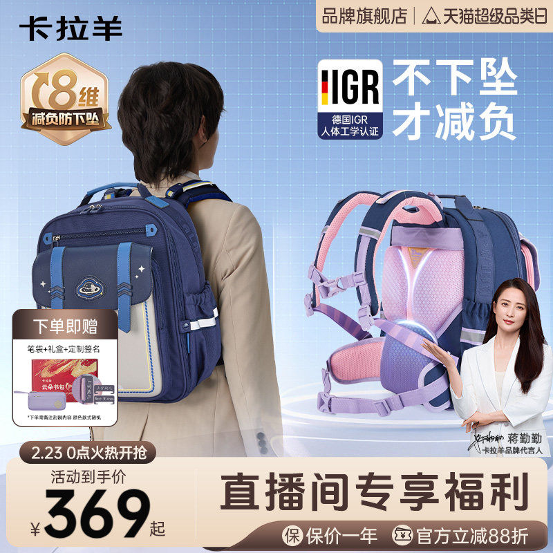 超轻便软减负缓震卡拉羊小学生书包一二三年级女童男生儿童双肩包