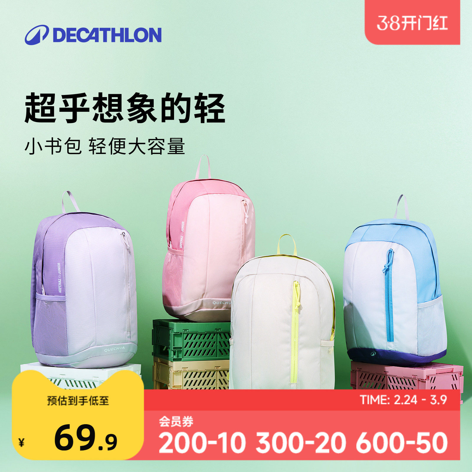 迪卡侬双肩包官方儿童旅行背包女运动轻便登山一年级学生书包KIDA