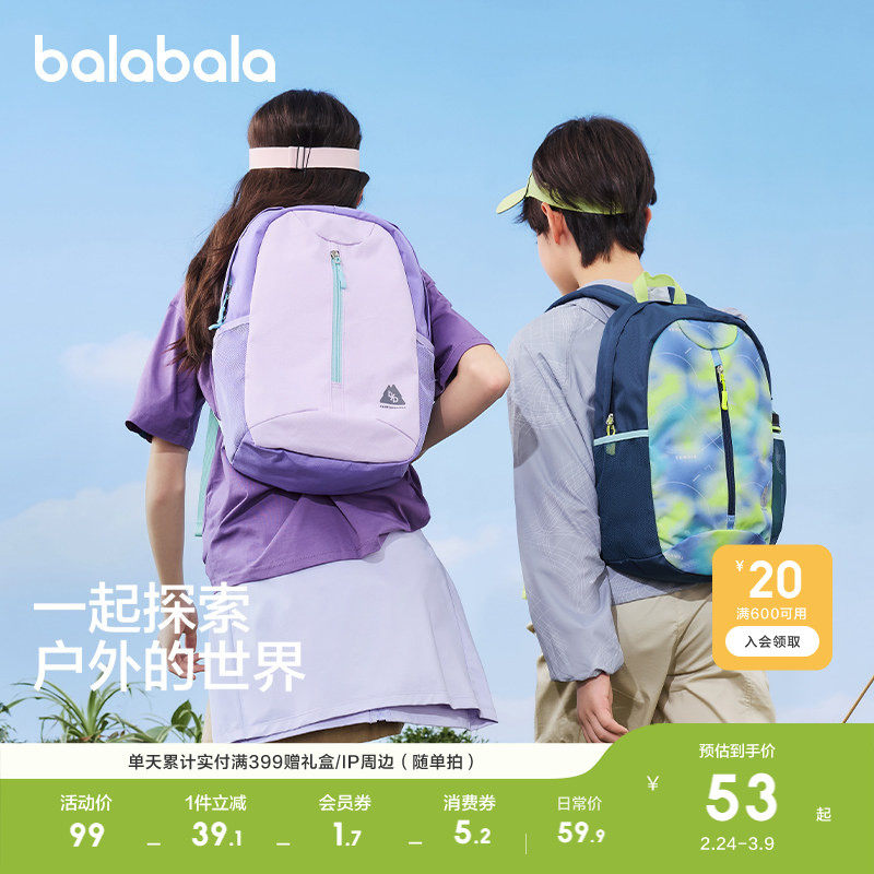 巴拉巴拉儿童双肩包休闲包男女童大容量收纳背包撞色舒适外出春秋