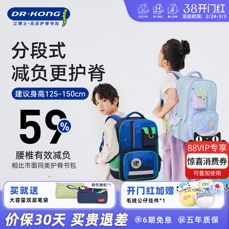 江博士智能护脊减负小学生书包三到六年级大容量男女孩儿童双肩包