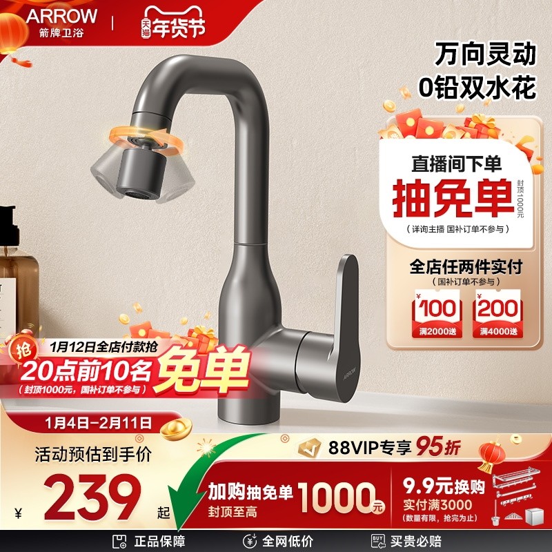 【新品】箭牌卫浴漱口水面盆龙头洗脸盆抽拉式冷热水双用官方旗舰