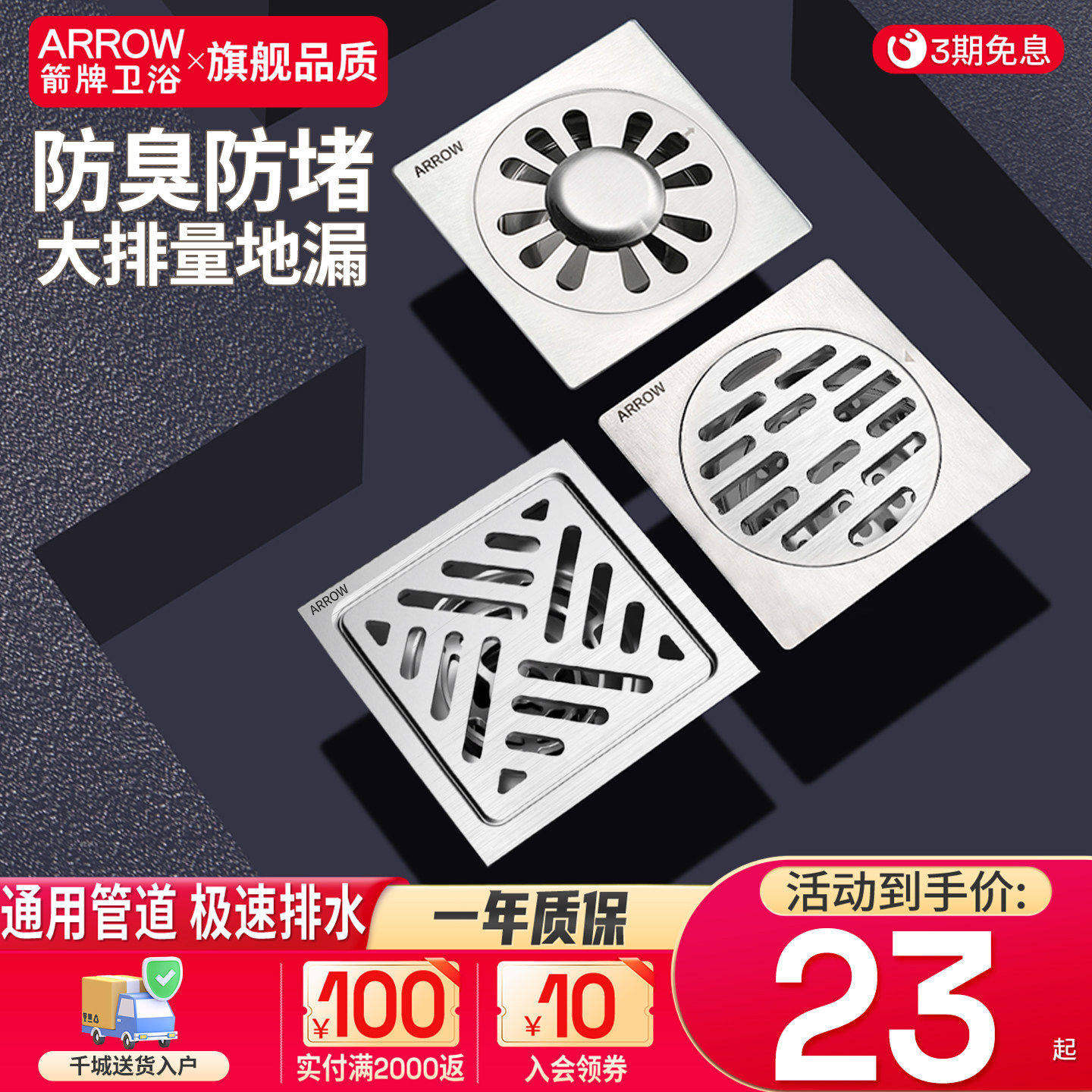 箭牌地漏防臭卫生间浴室洗衣机厕所通用下水道防臭神器不锈钢地漏