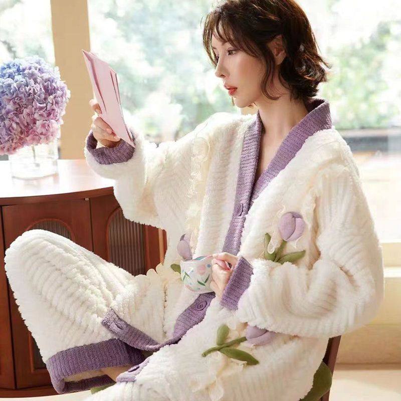 - 冬季睡衣女珊瑚绒加厚