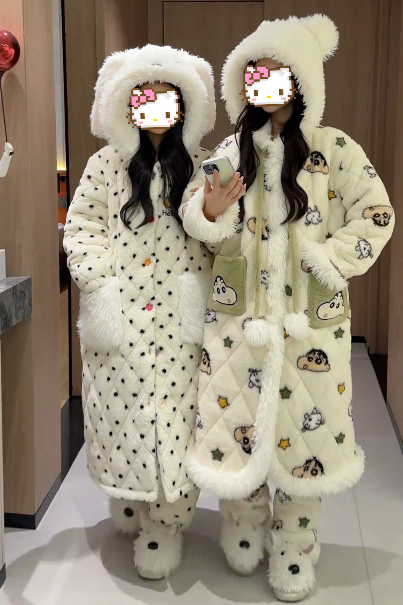 可爱卡通图案夹棉长款睡袍2026新款保暖蜡笔小新冬季睡衣女加厚