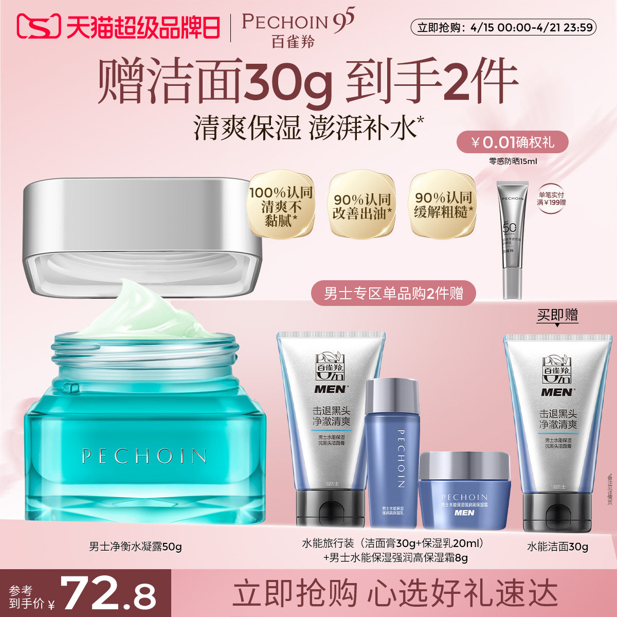 百雀羚男士洗面奶清爽控油去黑头收缩毛孔补水保湿正品官方旗舰店