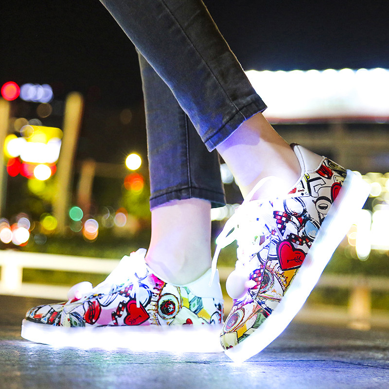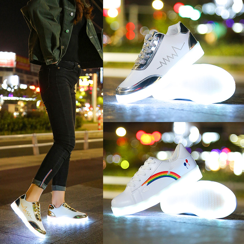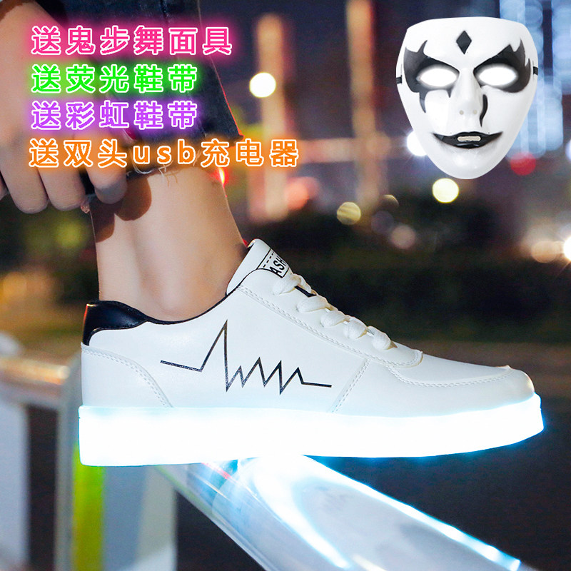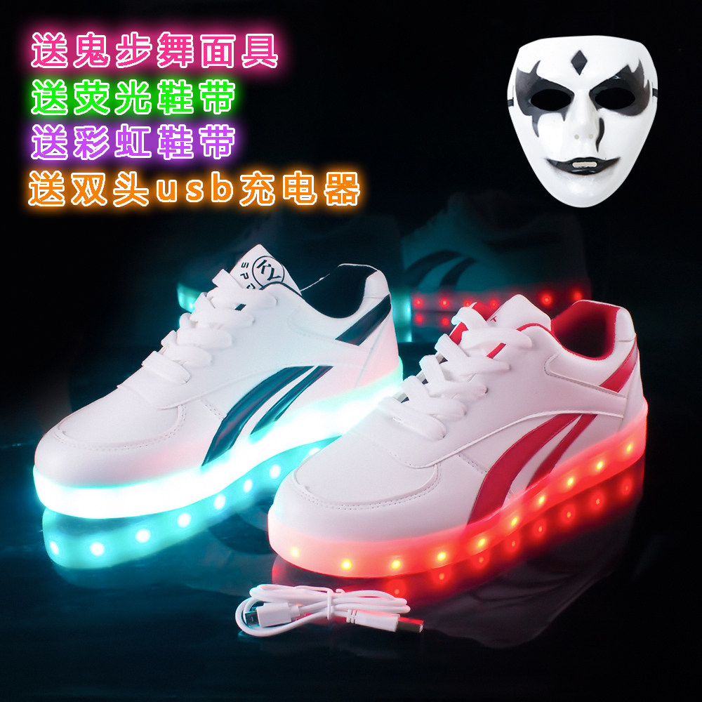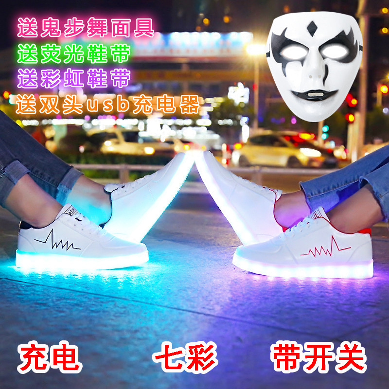 充电七彩发光鞋鬼步鞋荧光夜光鞋男女情侣学生带灯街舞小白鞋板鞋