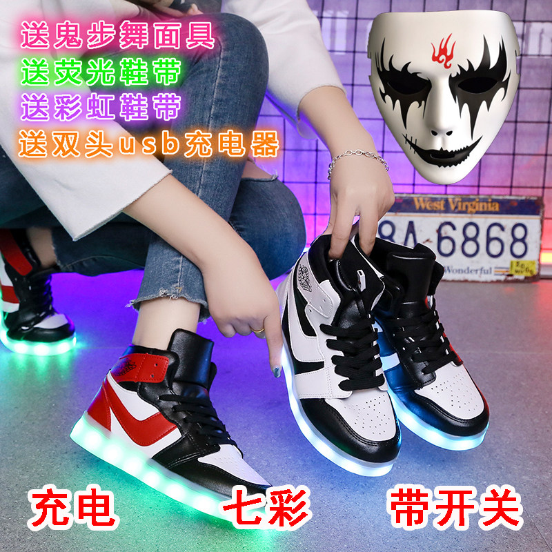 带灯鬼步舞鞋潮流荧光鞋男女充电发光鞋七彩灯光韩版学生夜光板鞋