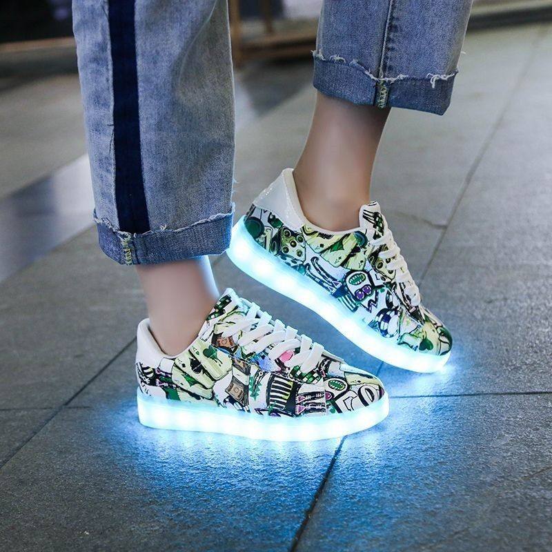 充电带灯发光鞋七彩夜光荧光鬼步鞋男女学生休闲跑步运动鞋亮灯鞋