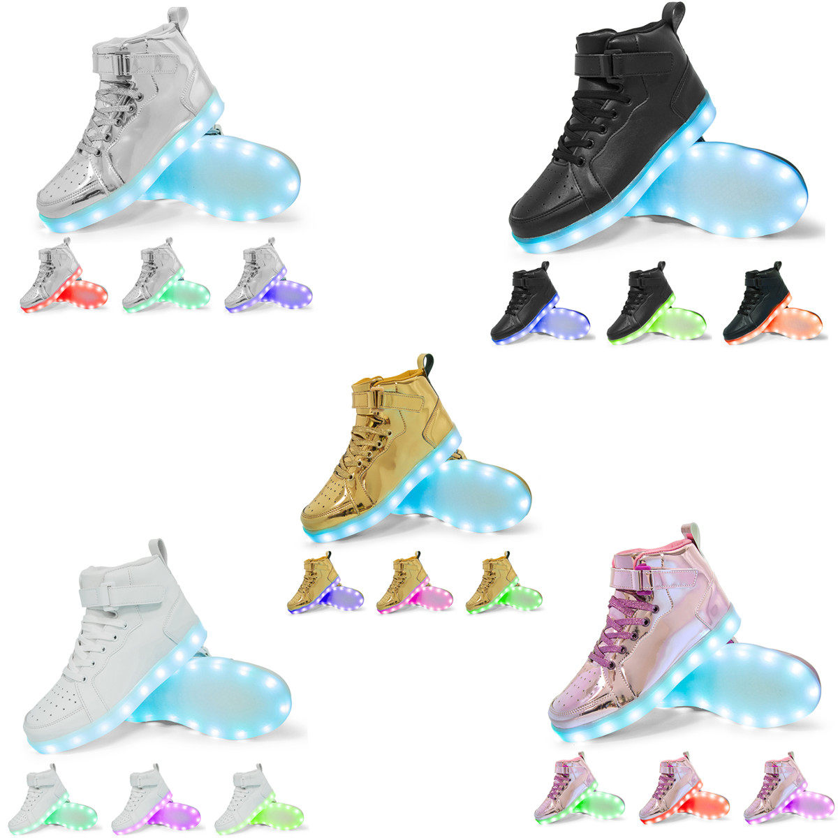 充电七彩发光鞋休闲运动鞋大儿童男童女孩学生荧光带灯夜光小白鞋