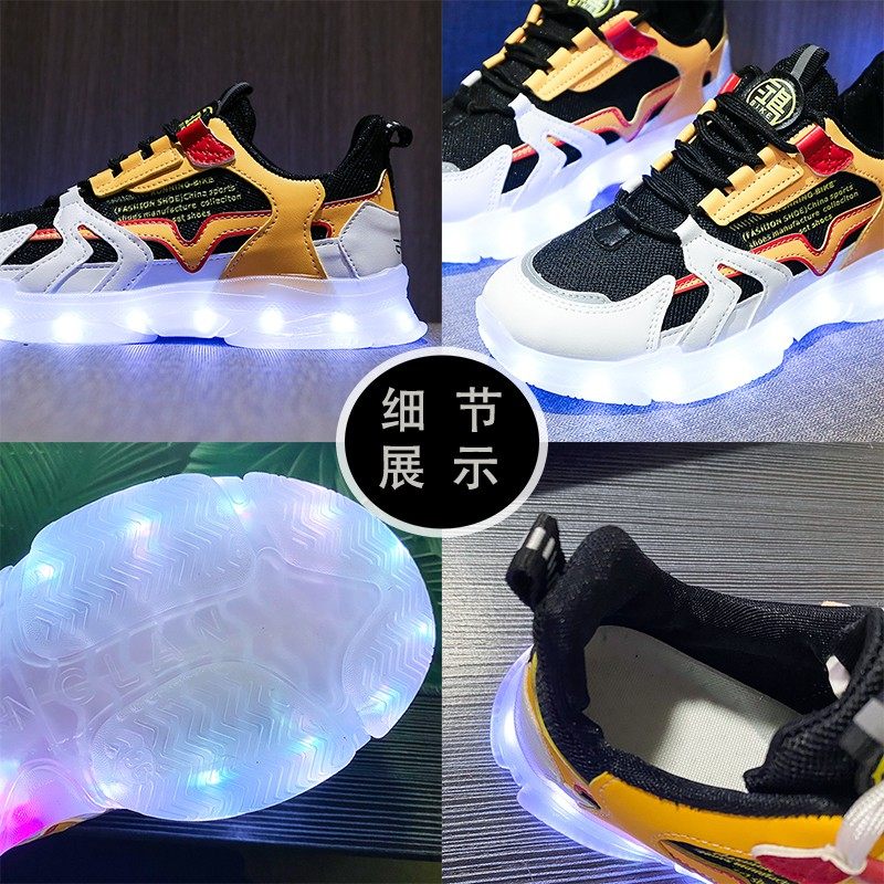 网面透气儿童充电七彩发光鞋荧光夜光带灯男童女童学生休闲运动鞋