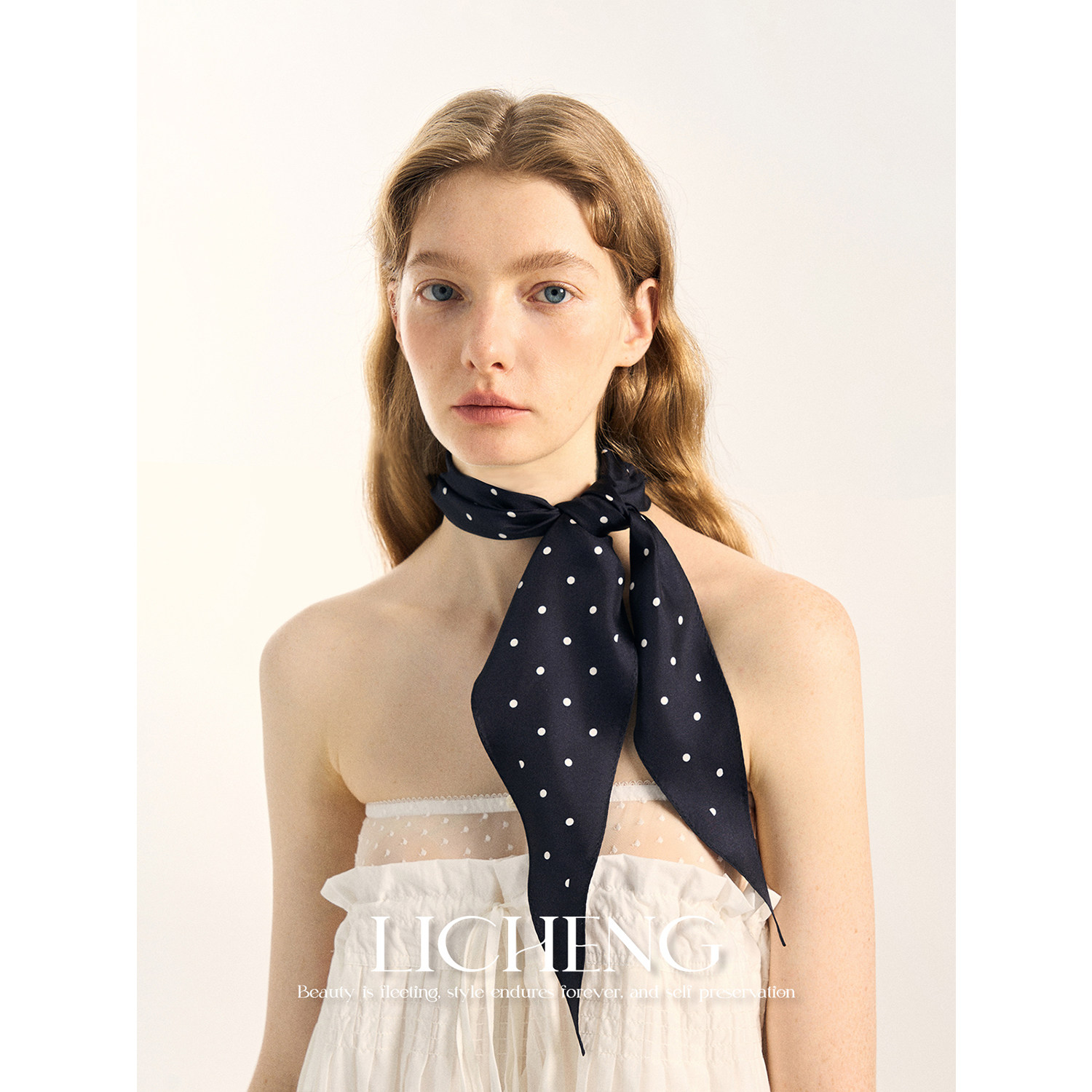 盈妹简约至臻丨法式赫本风黑色波点丝巾三角巾女发带腰带包包配饰