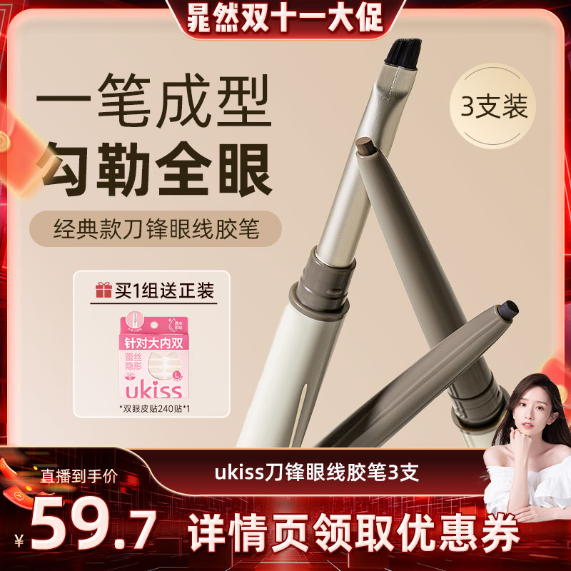 【晁然双11】ukiss刀锋眼线胶笔防水不晕染双头印章持久新手