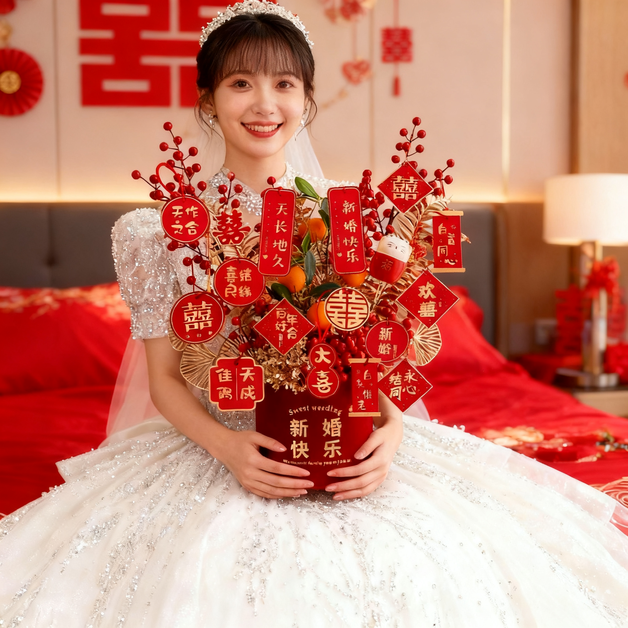 结婚婚房装饰用品福桶仿真花插花布置摆件礼物新婚氛围感桌面好物