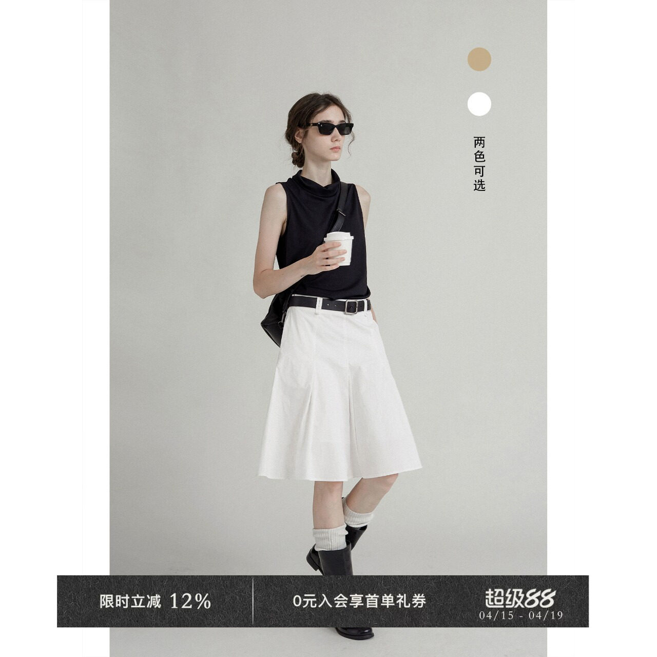 韩系chic白色无袖背心连衣裙女夏季新款松弛感高端法式小个子长裙