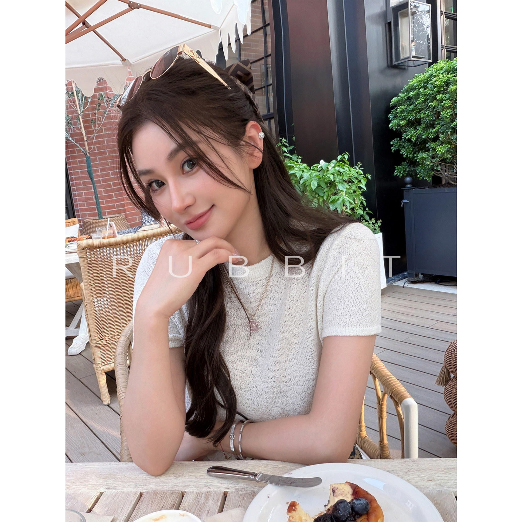 RUBBIT CHIC 基础百搭 简约高级感通勤 纯色显瘦针织短袖 上衣女