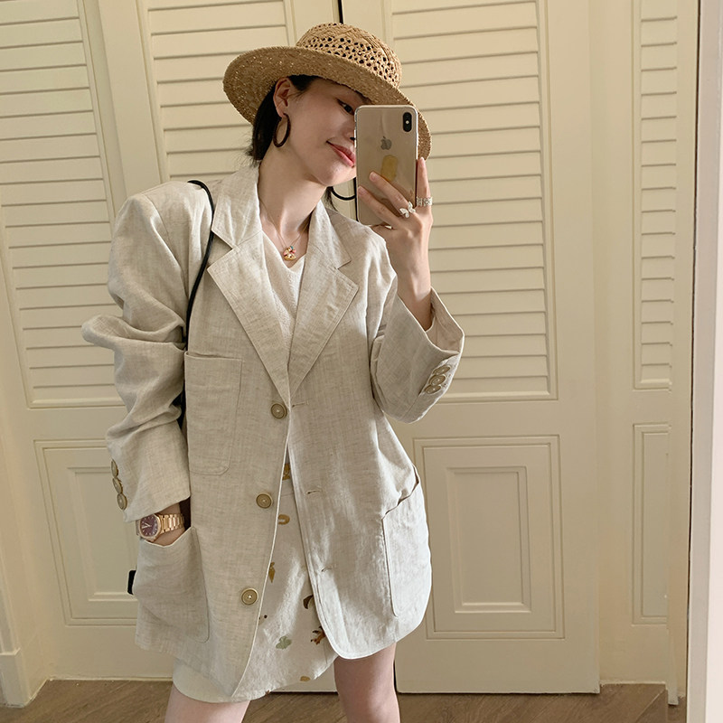 金苏一 天丝亚麻西装2026春夏韩版宽松薄款防晒外套chic气质上衣
