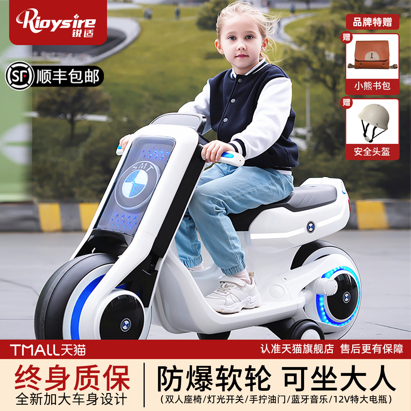 儿童电动摩托车充电男孩三轮车女孩双人电瓶车可坐大人遥控玩具车