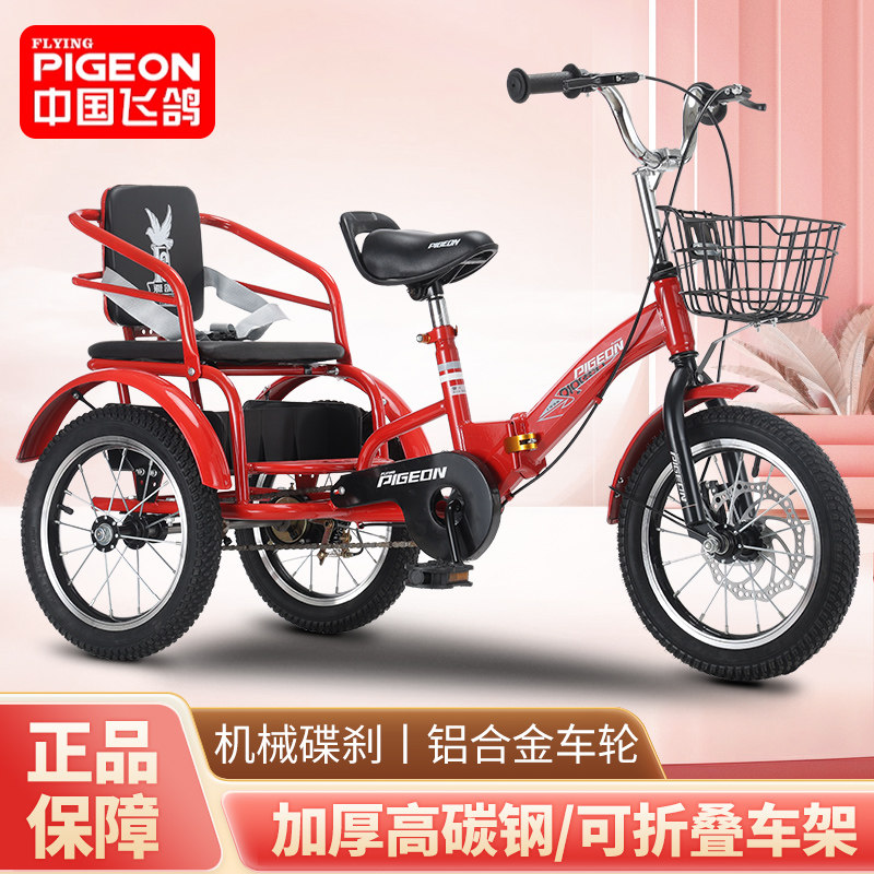 飞鸽儿童脚蹬三轮车双人自行车2-4-6-9岁童车男孩女孩脚踏车单车