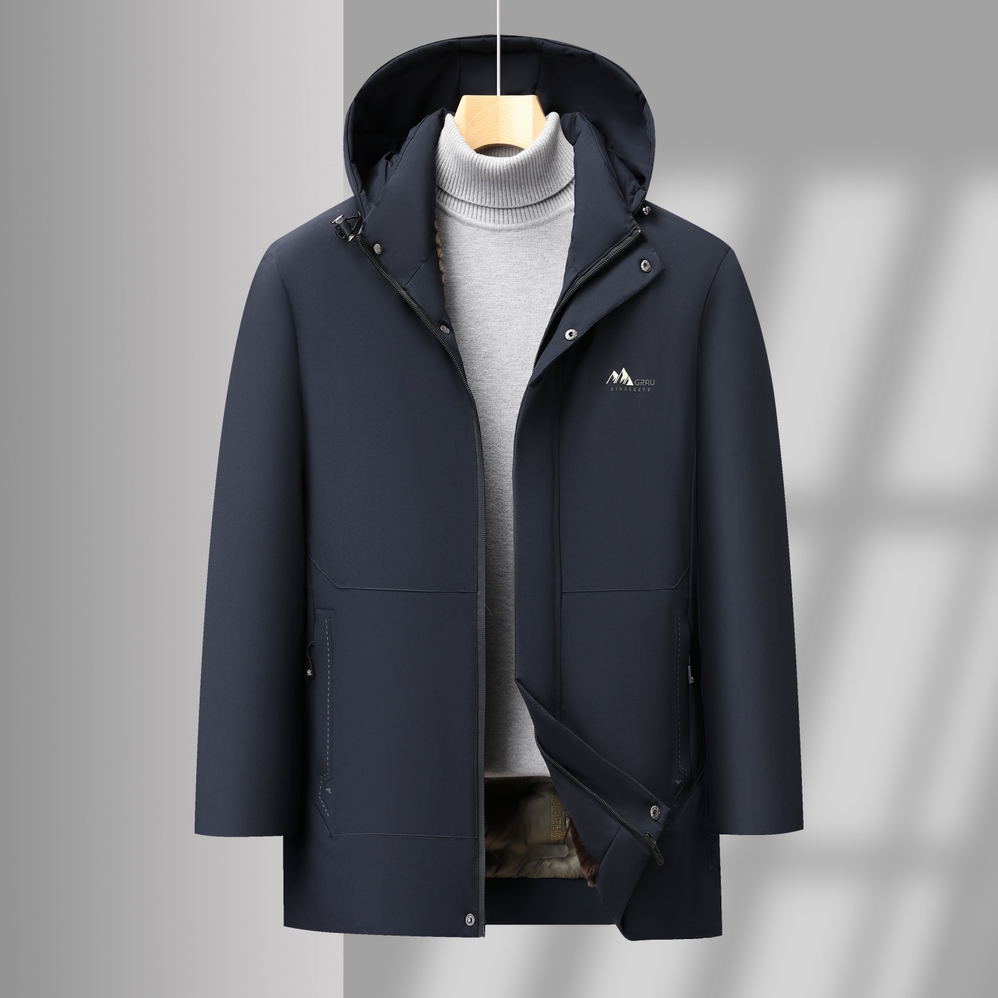 罗蒙男士棉衣秋冬季加棉加厚中长款棉袄2025新款连帽保暖棉服外套