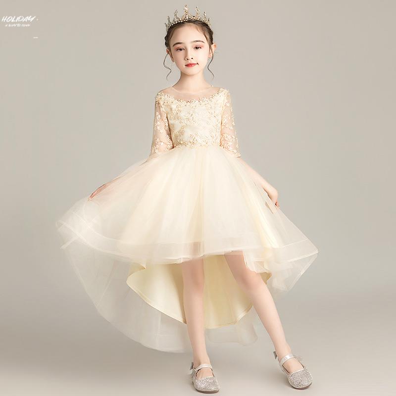 夏新女童百天周岁礼服洋气公主裙连衣裙婚纱表演裙走秀花童蓬蓬裙