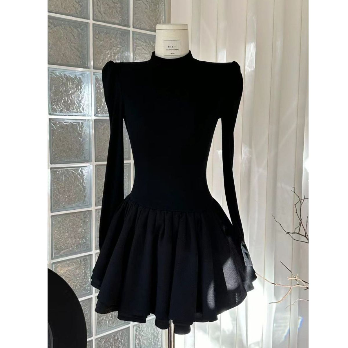 2025新款初春小黑裙公主蓬蓬裙连衣裙子女大衣内搭针织裙生日礼服