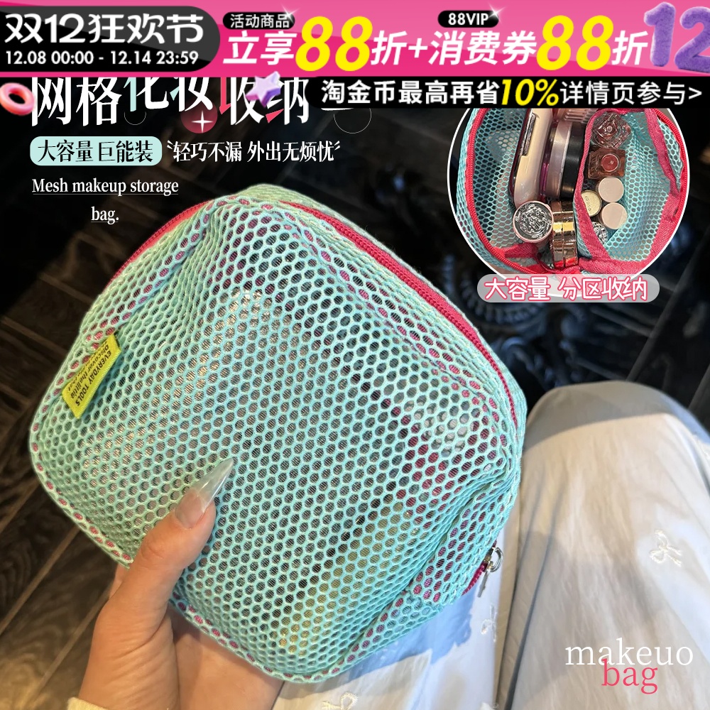 多巴胺豆腐包迷你网纱便携旅行洗漱化妆品收纳包补妆包网格杂物包