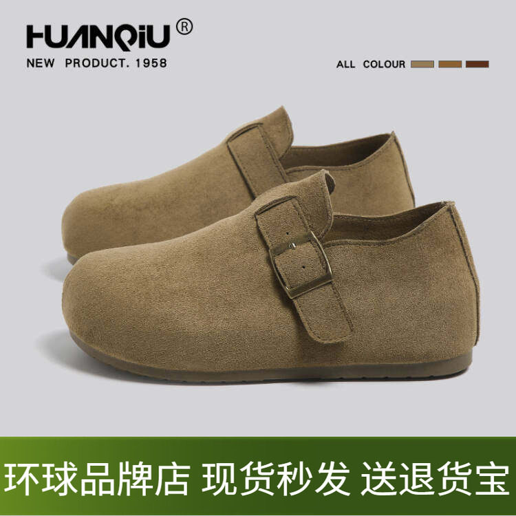 2026夏季新款圆头磨砂皮勃肯鞋拖平底包头拖鞋一脚蹬懒人鞋女鞋潮