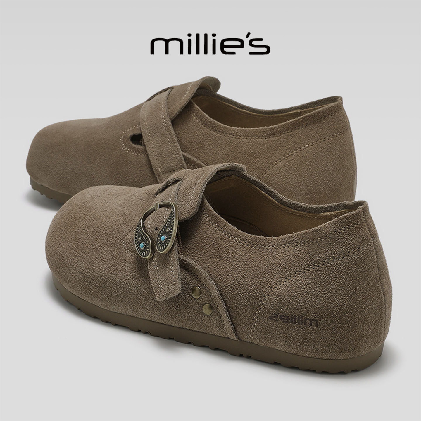 MILLIE'S/妙丽2026春季新款复古勃肯鞋平底软底一脚蹬懒人鞋女鞋
