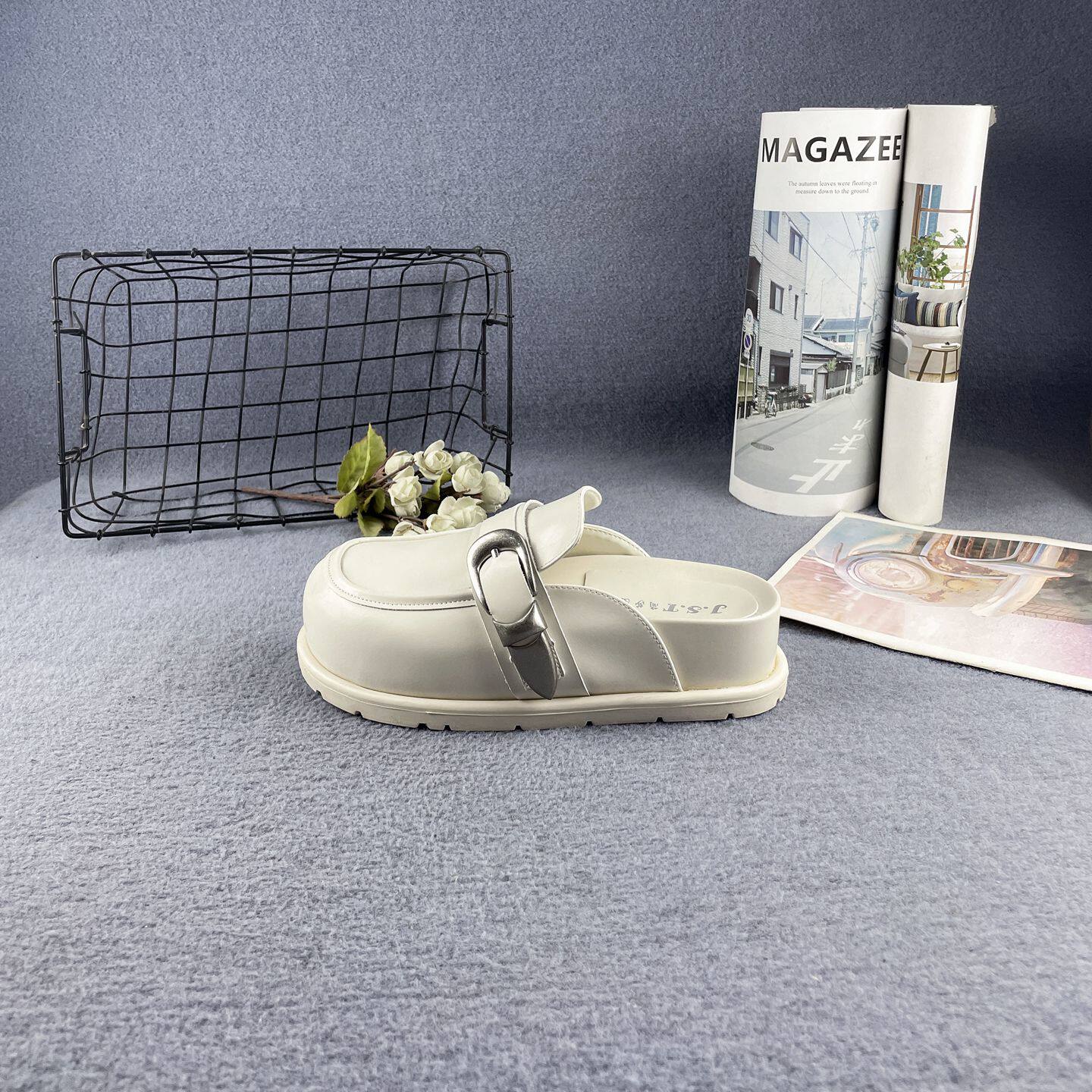 2024年新款真皮超轻柔软两穿厚底松糕鞋圆头软底一脚蹬懒人鞋女鞋