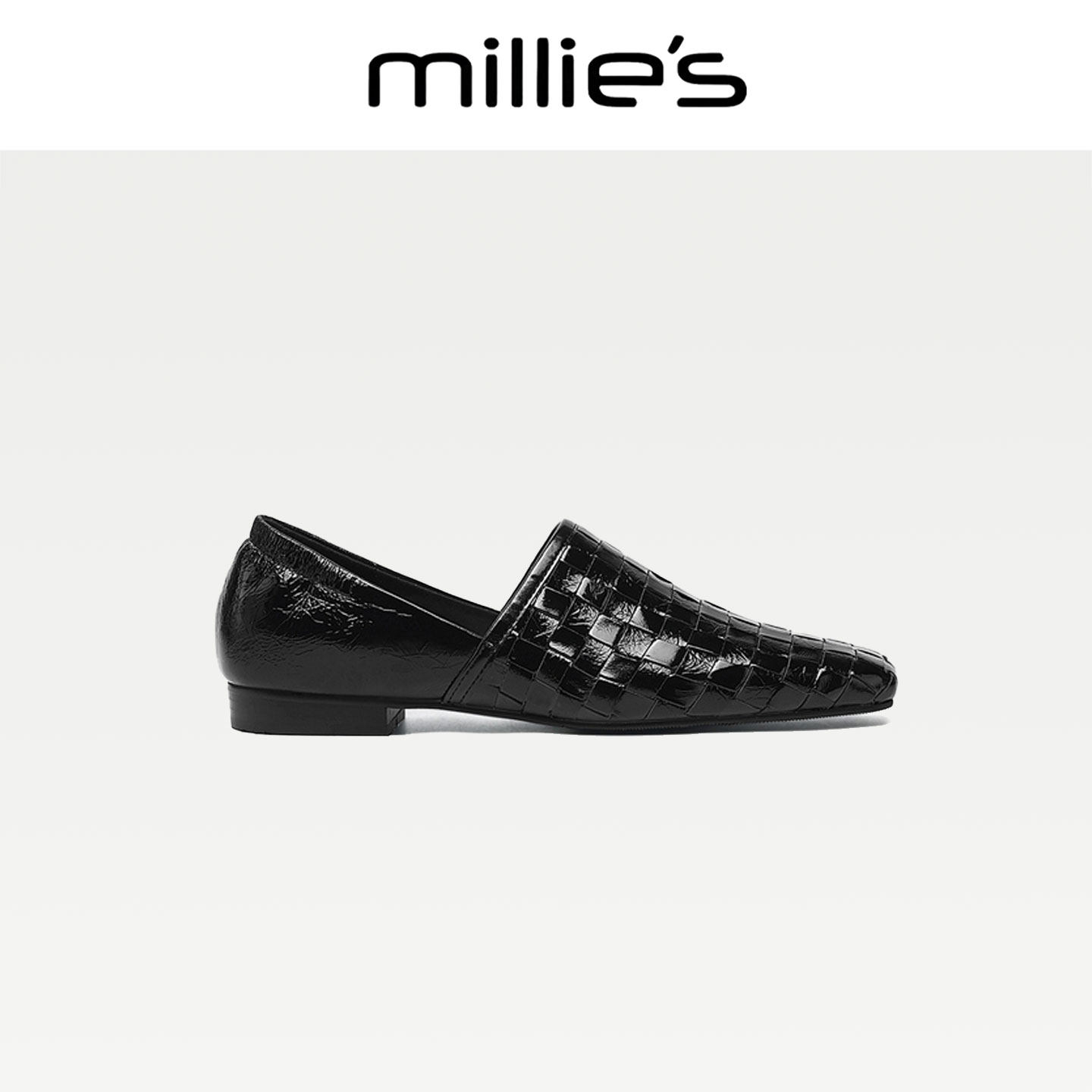 MILLIE'S/妙丽时尚平底新款真皮编织乐福鞋一脚蹬懒人鞋女鞋CQ