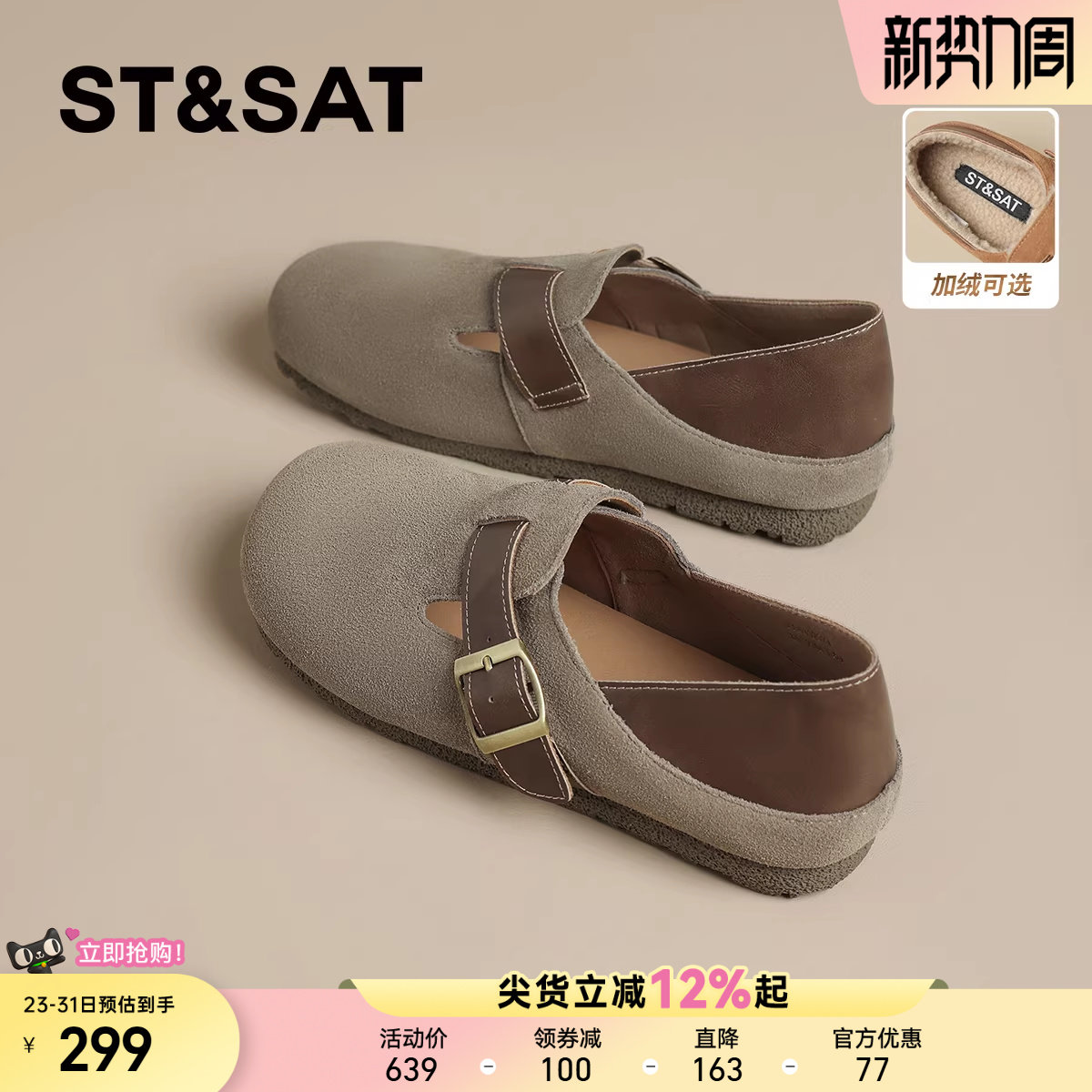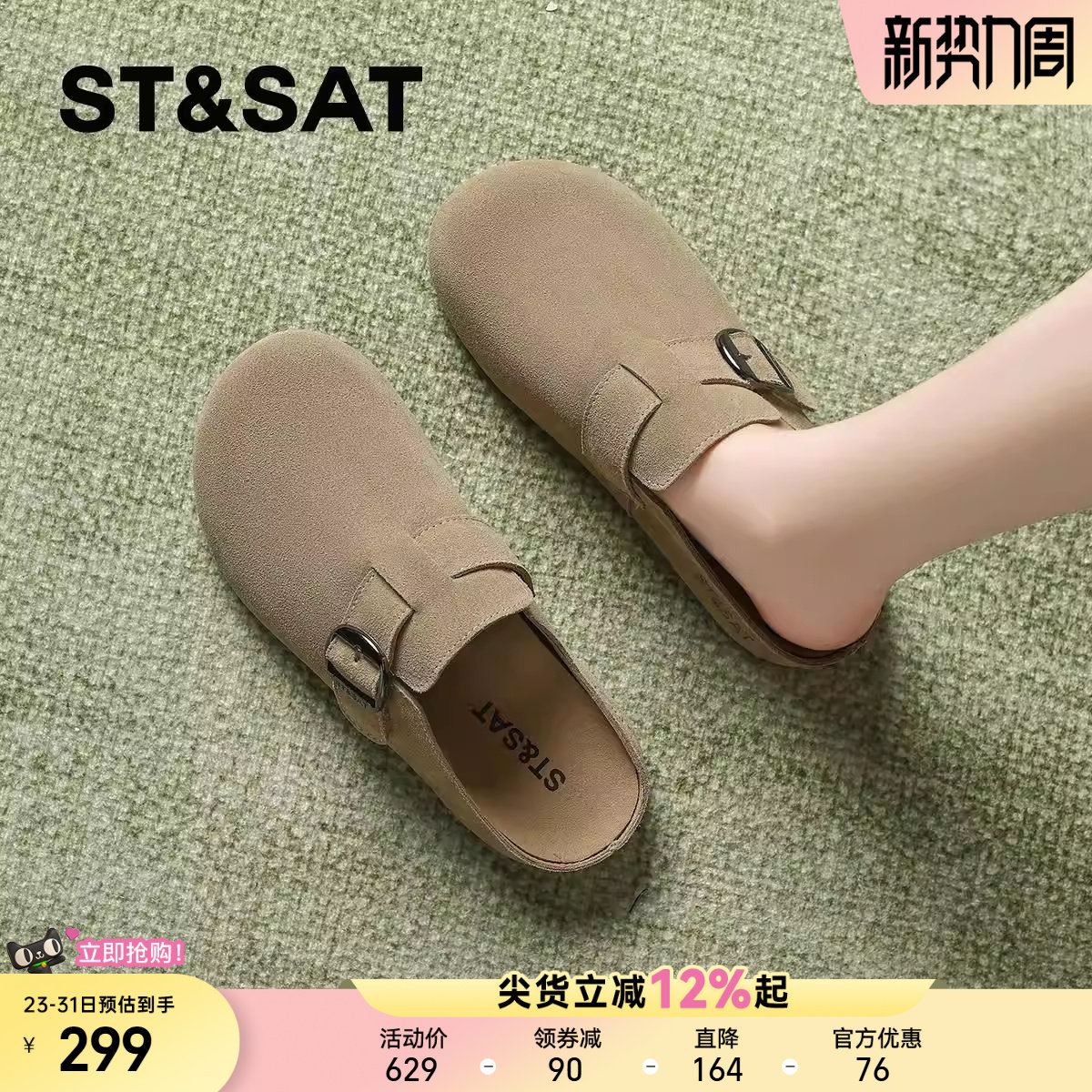 星期六复古两穿真皮勃肯鞋女鞋春季新款拼色懒人一脚蹬博肯单鞋子