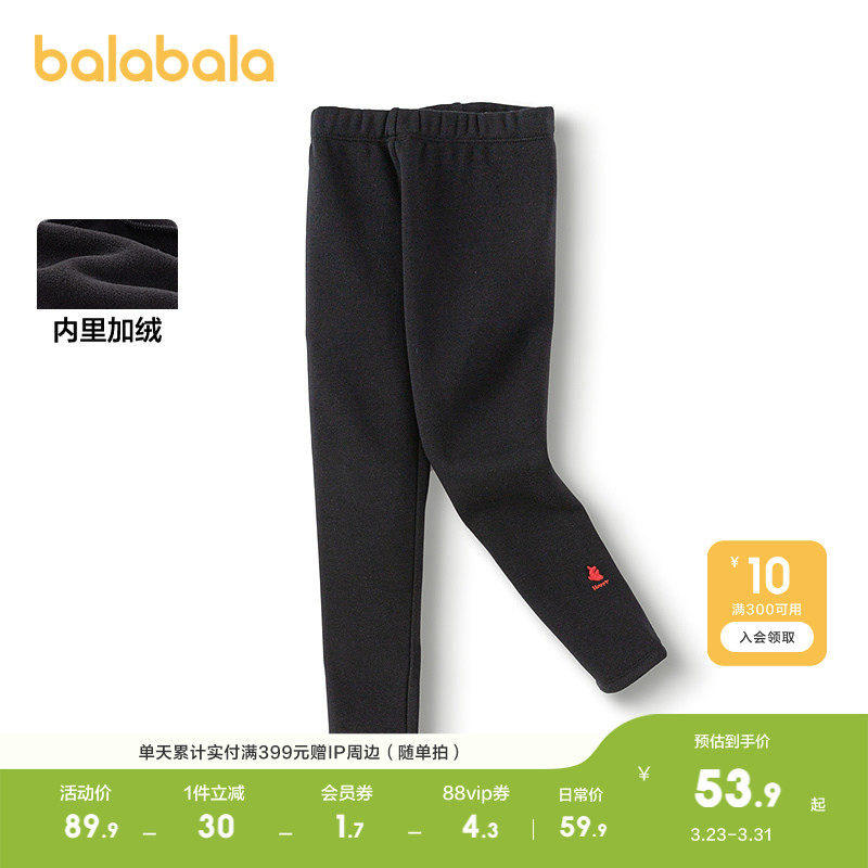 巴拉巴拉童装儿童打底裤加绒保暖女童裤子秋冬长裤时尚百搭休闲裤