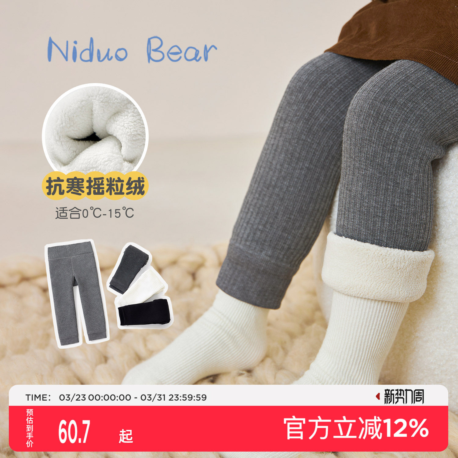 尼多熊摇粒绒儿童打底裤加绒秋冬女童连裤袜女宝宝婴儿冬加厚裤子