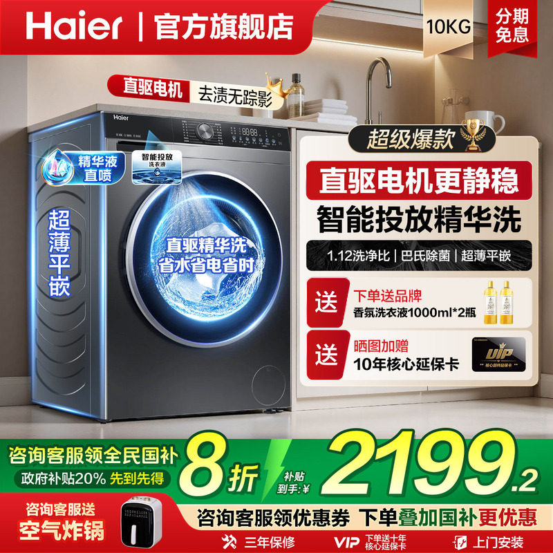 [减20%]海尔云溪4.0滚筒直驱精华洗10KG全自动洗衣机换新补贴77E