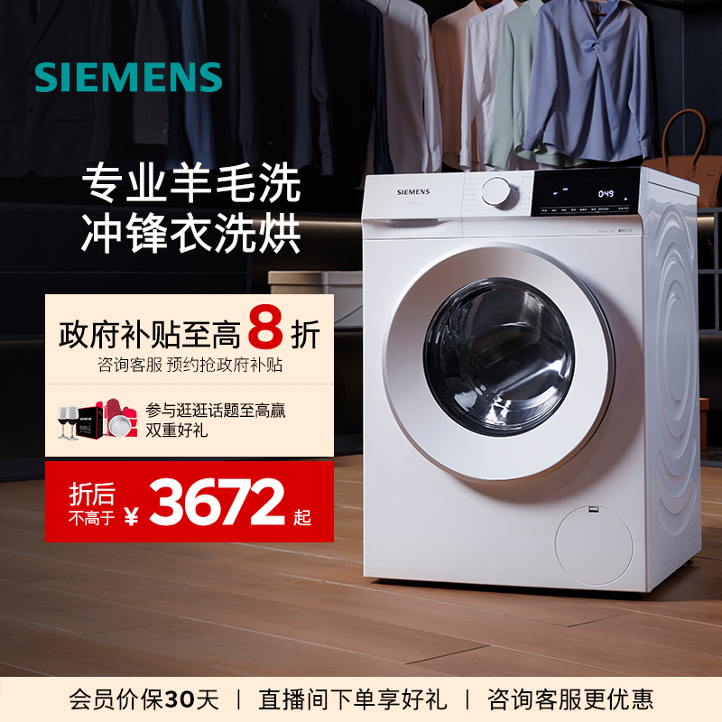 【蓝宝石超氧】西门子10公斤滚筒家用全自动洗衣机官方变频1E10