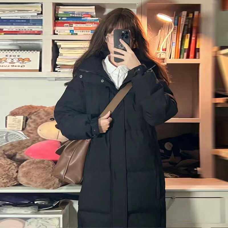 2025冬季时尚韩版长款过膝加厚学生棉服女宽松连帽保暖棉衣外套潮