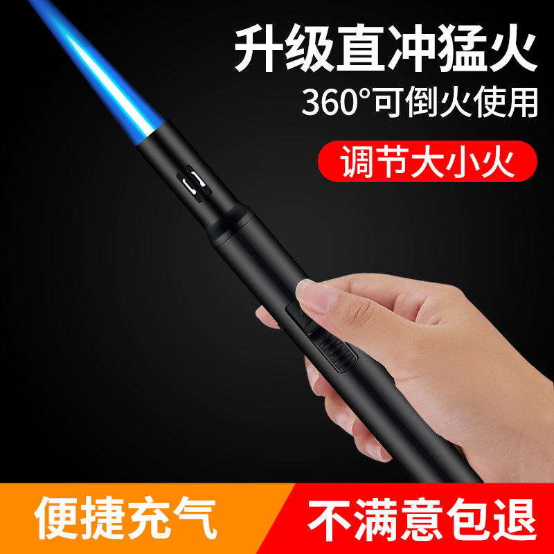 可倒置直冲喷火枪防风充气打火机雪茄点烟器艾灸点香烧烤专用火枪