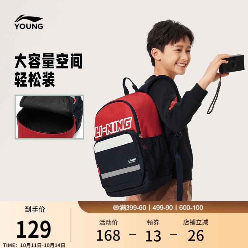李宁小学生书包2025新款男童女孩双肩包春游3一6年级男生女生包包