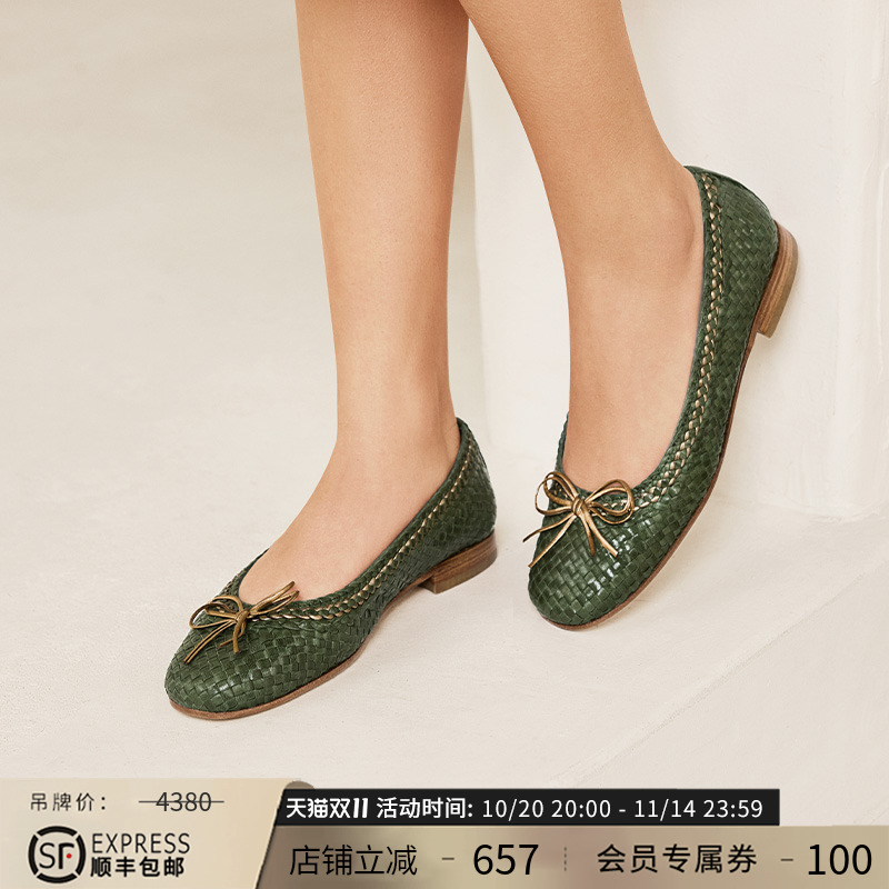 Patricia/帕翠亚西班牙原产秋冬鞋子手工编织平底单鞋女83718