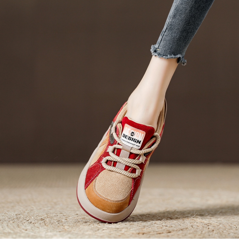 西班牙小众品牌ONGYSL复古拼色女鞋软皮软底舒适运动风休闲鞋子