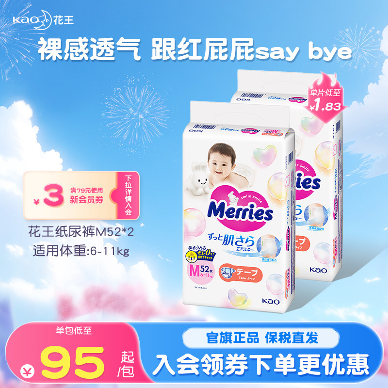 日本花王纸尿裤M64*2包 宝宝尿不湿婴儿超薄三倍透气中号M码通用