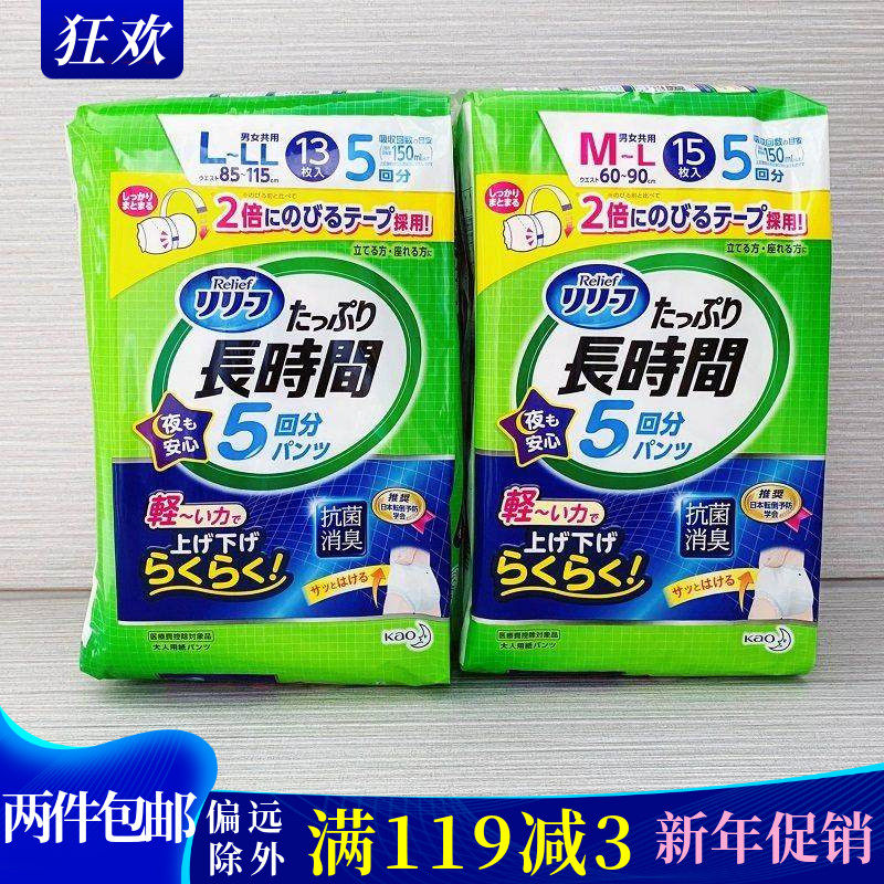 日本花王成人一次性内裤M~L码15片5回分老人夜用拉拉短裤型纸尿裤
