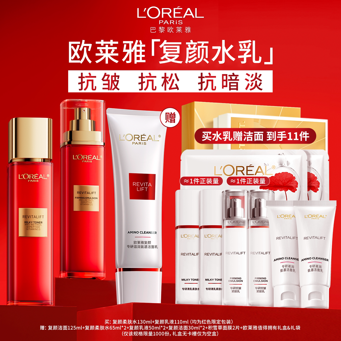 欧莱雅复颜水乳套装护肤品送妈妈礼物保湿紧致抗皱抗老淡纹女正品
