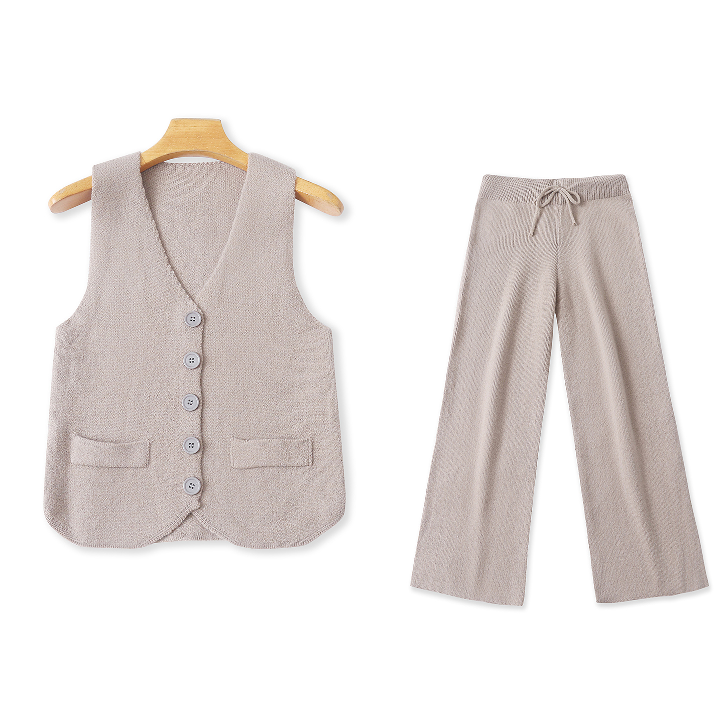时尚针织套装 毛衣马甲+松紧腰阔腿裤 秋冬新外贸女装时尚32297